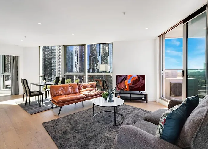 Southbank Skyline Stay In Heart Of 墨尔本位于中心的位置, 在发现大楼附近。 公寓设有私人游泳池和大厨房,距离墨尔本观星摩天轮有2.8公里。